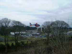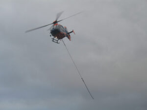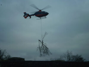 The trees were soft felled by the most experienced members of our team and then prepared for extraction. The timber was then chained and attached to the helicopter and then eventually moved to the adjacent field, landed at the western end, after which they were removed to a part of the field for processing.
